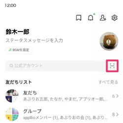 LINEを開き、右上の赤枠の部分を押す